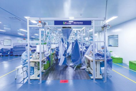 得益于“两条腿走路”,唯美医疗公司上半年交出亮眼成绩单。刘彬底气十足,“公司股东来自法国、以色列、墨西哥和国内医疗龙头,相互持股让企业更具活力,计划年底销售额突破2.9亿元配资炒股门户网,力争三年实现‘摸高’7亿元。”图为唯美医疗智能吊挂区,工人正在加紧赶活。(记者 黄芸实习生 李好)